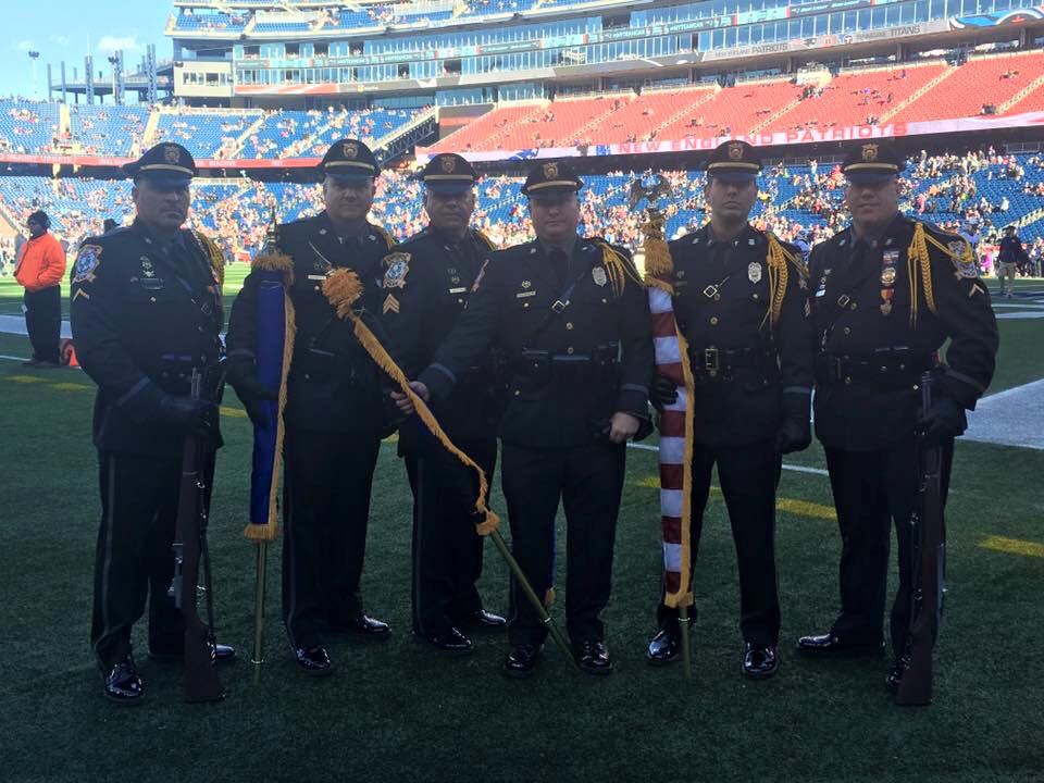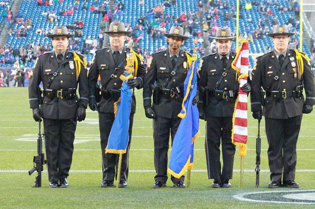12/20/2015 - The SCPD Honor Guard presenting the colors prior to the New England Patriots game against the Tennessee Titans at Gillette Stadium.
