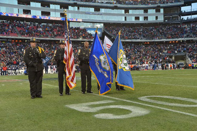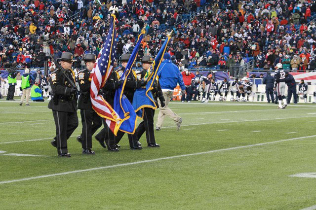 12/30/2012 - The New England Patriots invited the State Capitol Police Department's Honor Guard to present flags for the National Anthem ceremony for the New England Patriots vs. Miami Dolphins football game.