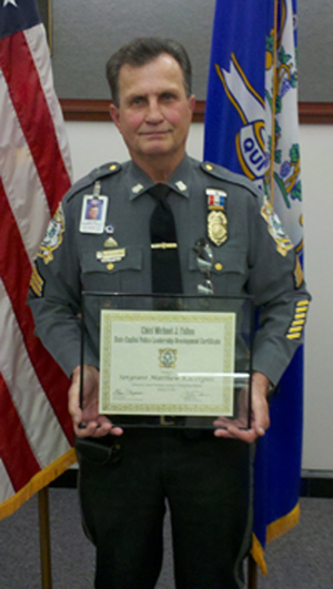 01/25/2012 - It is with pride that Chief Walter Lee announces that Sergeant Mathew Kacerguis has received the Chief Michael J. Fallon State Capitol Police Leadership Development Certificate. The program that is put on by Legislative Management's Training and Staff Development Unit consists of core classes and a host of management focused electives that targets the department's supervisors in areas of critical thinking, strategic planning, goal setting, time management, impromptu speaking, and ethics.