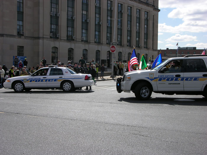 03/10/2012 - The State Capitol Police Department marches in the 41st Annual Greater Hartford St. Patrick's Day Parade in Hartford.