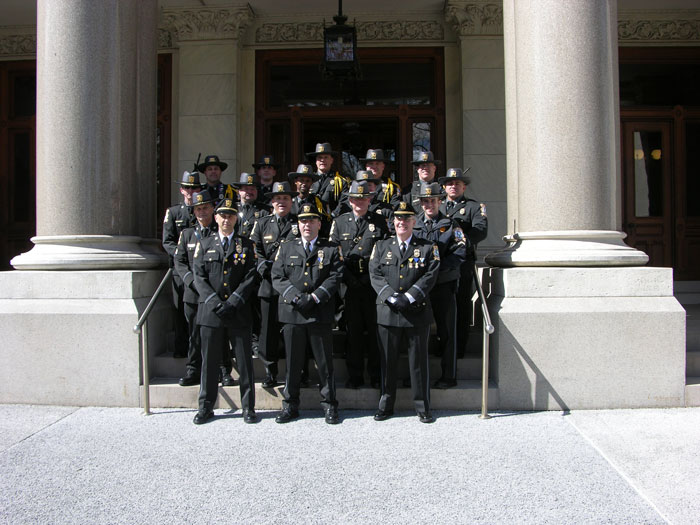 08/22/2012 - A swearing-in, promotion, and awards ceremony was held by the State Capitol Police Department in the Legislative Office Building. During the ceremony Chief Walter Lee Jr. ceremoniously swore in two officers, and promoted; one corporal, one sergeant, and one lieutenant. Promoted were Lieutenant Keith Zengel, Sergeant Timothy Boyle and Corporal Timothy Murphy. Sworn-in were P.O.S.T.C. certified officers: Milton Hardy and Stanley Masternak.