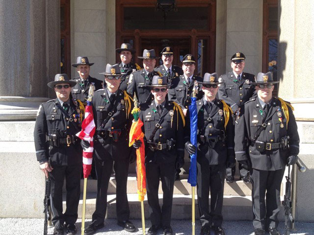 03/15/2014 - The State Capitol Police Department marches in the 43rd Annual Greater Hartford St. Patrick's Day Parade in Hartford.