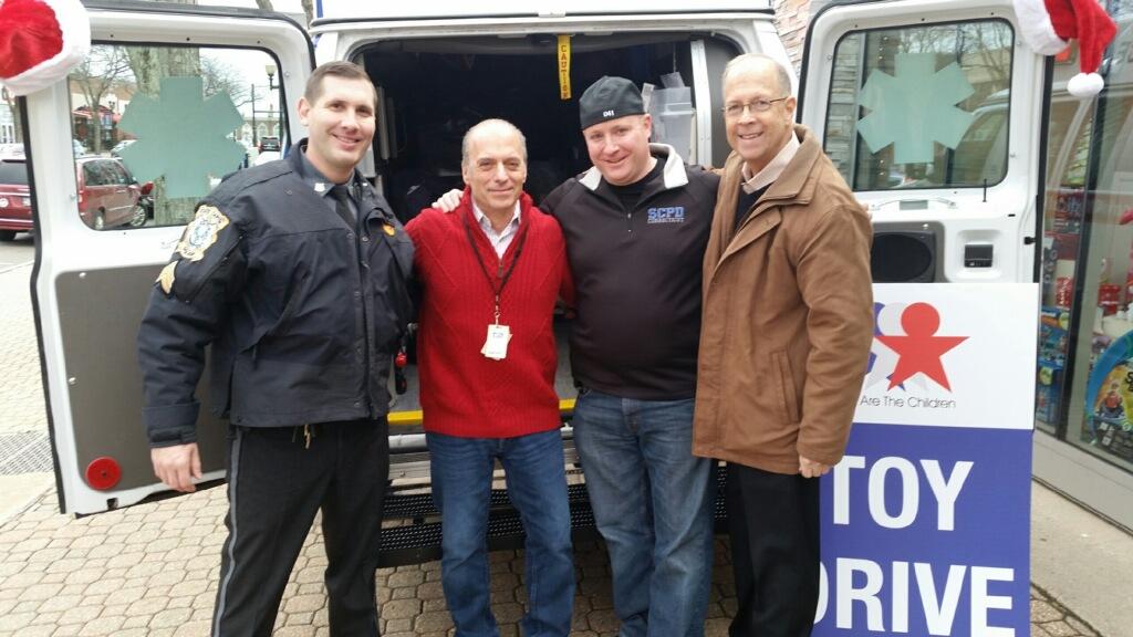 12/16/2015 - The Connecticut State Captiol Police donated toys to the We Are The Children Toy Drive hosted by 96.5 WTIC FM. The attached photo shows John Elliot, Sergeant Jonathan Paul Sylvester, Gary Craig, Christine Lee, and Corporal J.B. O'Reilly at the toy drive on December 16, 2015 in West Hartford Center. Proceeds donated were from unclaimed found money turned into the State Capitol Police over the past year. The State Capitol Police are proud to give back to the community!
