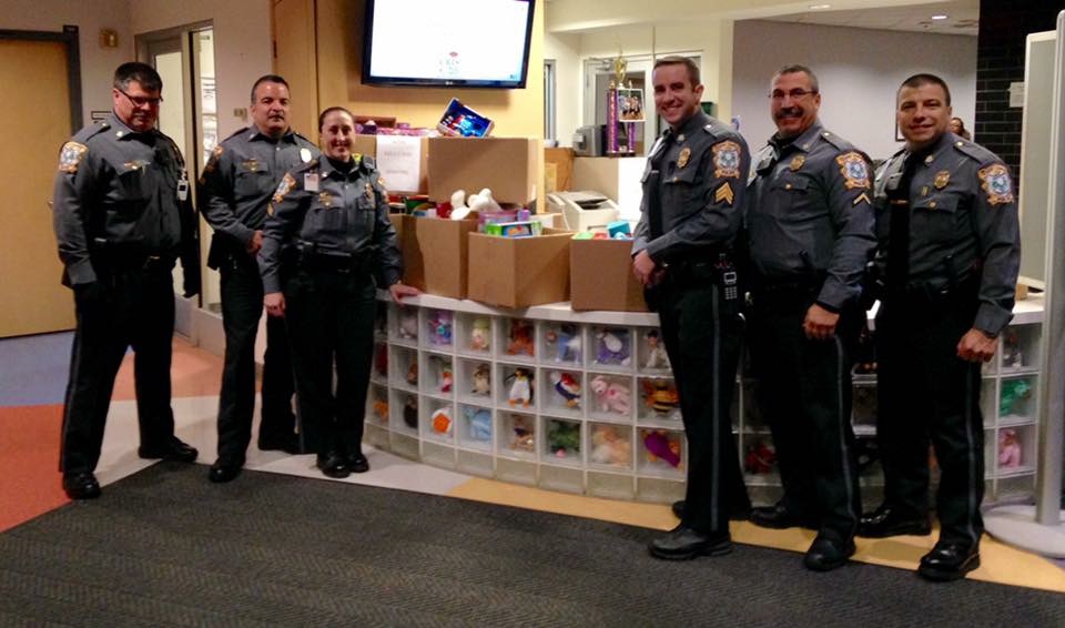 12/18/2015 - The Connecticut State Capitol Police came together as a department to collect toys to donate to the Connecticut Children's Medical Center Cancer Unit. The toy collection was spearheaded by Corporal Erica O'Connor, and resulted in the delivery of six large boxes of toys to the hospital this evening. Officer Caseria, Corporal Segovia, Corporal O'Connor, Sergeant Boyle, Officer First Class Giansanti and Officer Giansanti had the privilege of making the special delivery.