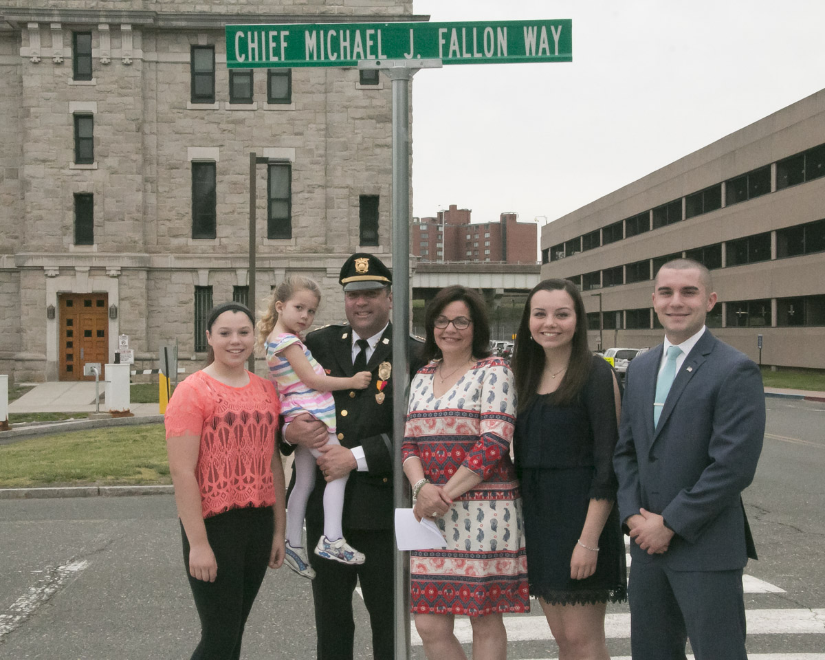 05/21/2016 - Dedication Ceremony for Chief Michael J. Fallon Way. The road in front of the Armory, formerly called Armory Road Extension has been renamed to Chief Michael J. Fallon Way. The ceremony was well attended by family, police and legislators. This dedication was for a commemoration of Michael J. Fallon's service and dedication to the Hartford community.