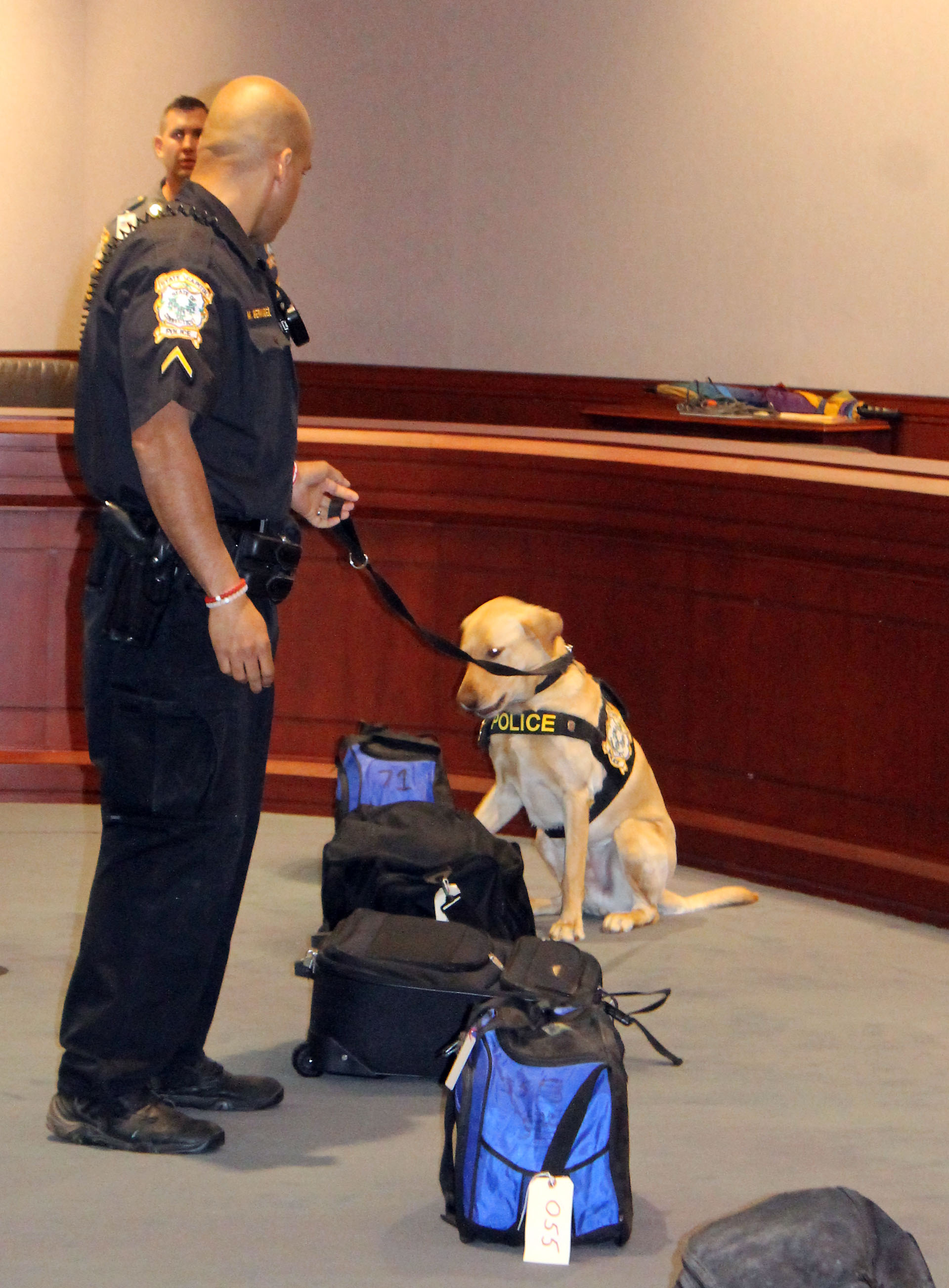 10/17/2014 - On October 17 2014, Officer First Class Michael Bermudez and his K-9 “Cutter” graduated the Boston Police Department’s explosive detecting K-9 program. This new K-9 team is a first for the State Capitol Police Department. K-9 Cutter will be used to sniff packages and areas of the Capitol complex. The State Capitol Police are excited to have this team available in this specialized area of police work.