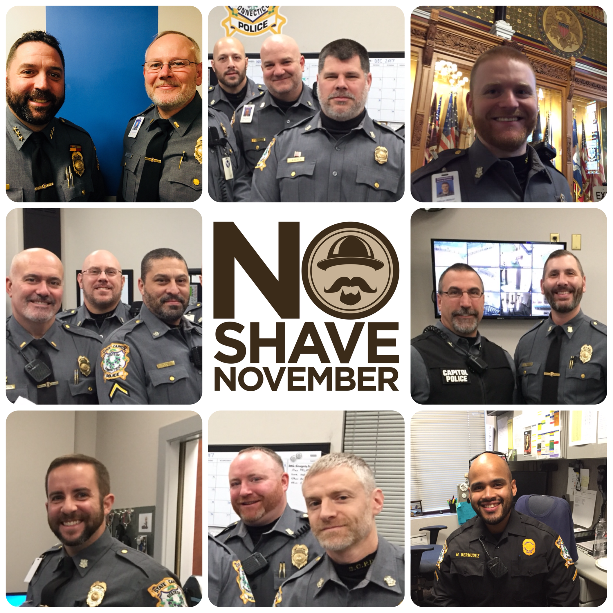 12/01/2017 - During the month of November members of the Capitol Police participated in No Shave November which is a web-based, non-profit organization devoted to growing cancer awareness and raising funds to support cancer prevention, research, and education. Each day, 22,000 people die from cancer worldwide (WHO). There's a good chance that someone you know and love will be affected by this disease. Nearly half of cancer diagnoses and deaths are preventable. No-Shave November's mission is to not only raise funds for cancer research and treatment but to educate the population about preventative measures. Several members grew beards during November and the team page raised over $700 towards No-Shave November. We look forward to doing this again next year. See https://no-shave.org/team/CTSCPD . Click the camera for a picture of some of the Capitol Police members.