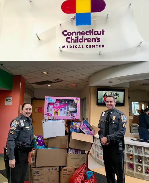 12/20/2017 - The Connecticut State Capitol Police came together as a department to collect toys to donate to the Connecticut Children's Medical Center Oncology Unit. Sgt Boyle and Corporal O'Connor delivered all the packages. SCPD wishes everyone a safe and joyous holiday season.